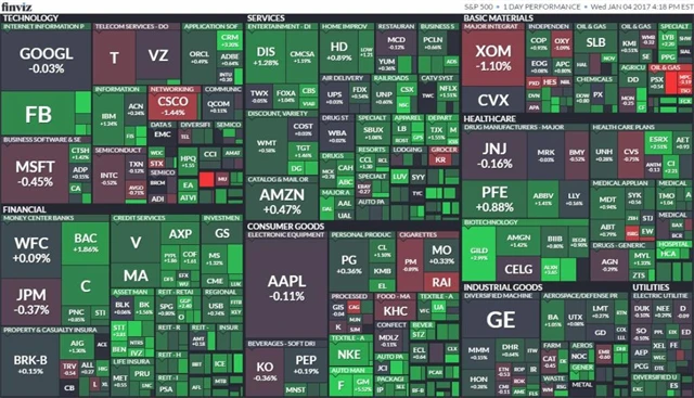 Index Dow přidal 0,30 % na 19 942,23 bodu a přiblížil se opět hladině 20 000 bodů, S&P 500 zpevnil o 0,57 % na 2 270,75 bodu a Nasdaq Composite vzrostl o 0,88 % na 5 477 bodů. Dařilo se akciím napříč sektory, nejvíce odvětvím základních materiálů, cyklického spotřebního zboží a financí. Index volatility VIX klesl o 7,78 % na 11,85 bodu a výnos 10letých vládních dluhopisů USA klesl o necelý bazický bod na 2,4354 %.