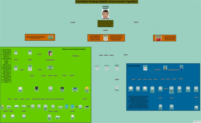 V pavučině je vidět výsadní postavení společnosti Kostelecké maso uzeniny (nově AGABSY) i majetky ovládané přes fond Hartenberg a společnost Imoba.
