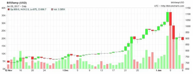 "V Číně dle různých zdrojů probíhá většina světového obchodování s bitcoinem. Situace v Číně má tedy na bitcoin silný vliv. Cena bitcoinu výrazně inverzně koreluje z čínským jüanem. Ten v roce 2016 oslabil vůči dolaru o přibližně 7 %, zatímco bitcoin prudce zpevnil. A není bez zajímavosti, že prudké poklesy ceny bitcoinu korespondují se dny, kdy podle spekulací čínská centrální banka stála za prudkým posílením čínského jüanu (4. a 5. ledna 2017)," dodává Martin Vlček.
