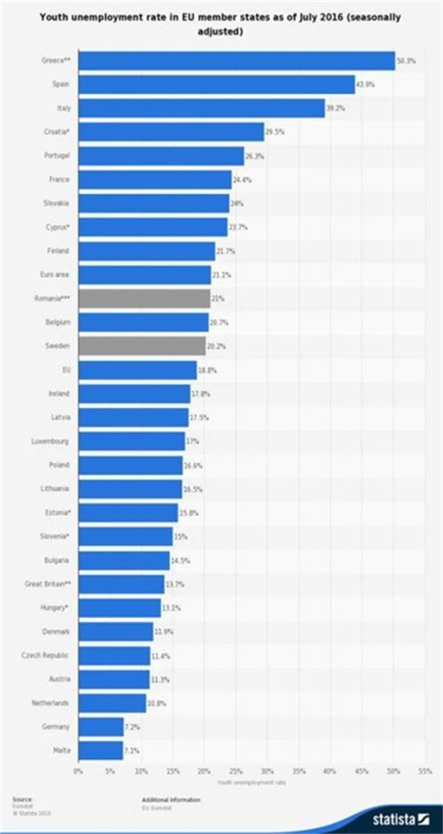 Podle řady politologů a analytiků Evropská unie prochází krizí, která by mohla vést až k jejímu rozpadu. Evropské státníky trápí brexit, migrační krize, stav řecké ekonomiky nebo vzestup nacionalismu a populismu. Zapomíná se ale na rekordní nezaměstnanost mezi mladými. V Řecku v roce 2016 dosáhla 50 %.