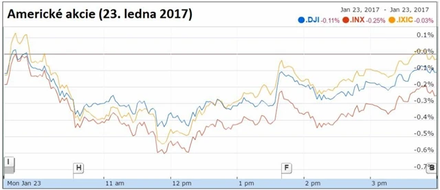 Akcie ve Spojených státech zakončily první den nového týdne se ztrátou. Trhy reagovaly na první kroky nového amerického prezidenta Donalda Trumpa, které potvrdily ochranářský postoj v zahraničním obchodu.