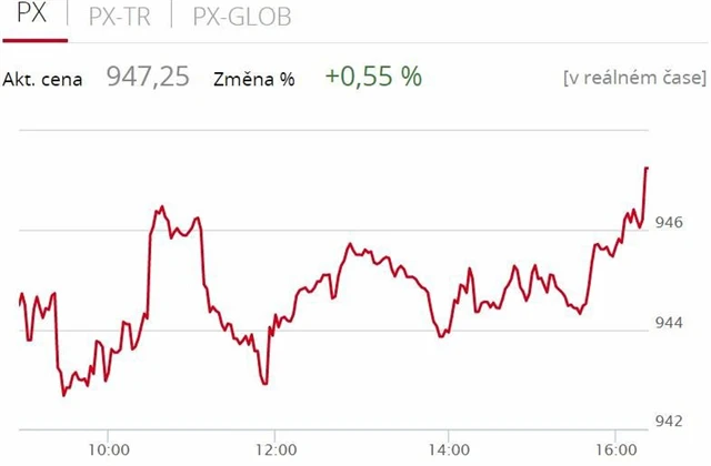 Pražská burza se v úterý odrazila od pondělní ztráty, když index PX stoupl o 0,55 % na 947,25 bodu. Nahoru burzu táhly akcie Unipetrolu a Komerční banky, nedařilo se naopak Monetě Money Bank. Objem obchodů dosáhl díky akciím O2 C.R. téměř tří miliard korun.