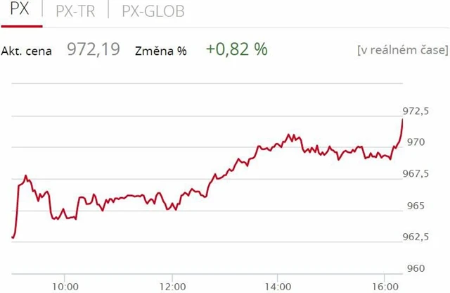 Pražská burza začala nový týden pozitivně, index PX stoupl o 0,82 % na 972,19 bodu. Nahoru burzu táhla zejména Erste Group Bank, nedařilo se naopak Monetě Money Bank a petrochemickému holdingu Unipetrol. Objem obchodů byl s 679 miliony korun mírně nadprůměrný.