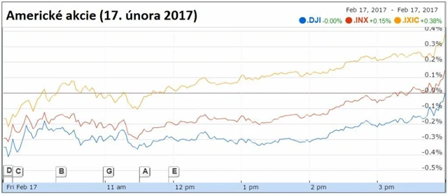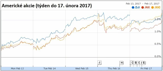 Index Dow v pátek posílil o 0,02 % na nové zavírací maximum 20 624,05 bodu, S&P 500 zpevnil o 0,17 % na nové zavírací maximum 2 351,16 bodu a index technologického trhu Nasdaq Composite uzavřel se ziskem 0,41 % na novém absolutním maximu 5 838,58 bodu. Index volatility VIX se snížil o 2,3 % na 11,49 bodu a výnos 10letých vládních dluhopisů USA se snížil o dva a půl bazického bodu na 2,42 %.