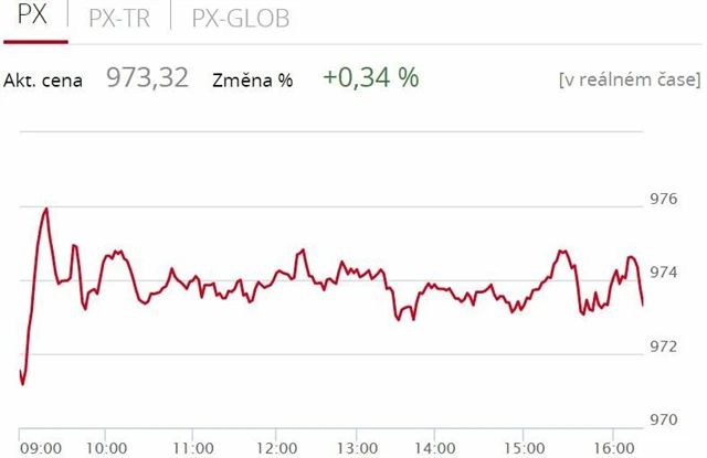 Pražská burza vykročila do nového týdne pravou nohou, index PX stoupl o 0,34 % na 973,32 bodu. Nahoru ji táhly finanční tituly, nedařilo se naopak operátorovi O2 Czech Republic. Objem obchodů byl se 433 miliony korun podprůměrný. (20. 2. 2017)