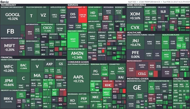 Na barevné "mapě" indexu S&P 500 zaujme sytě červená společnost Comcast s poklesem o bezmála 50 %, jde ale pouze o výsledek splitu akcií, přepočítaná hodnota akcie naopak vzrostla o 0,61 %.
