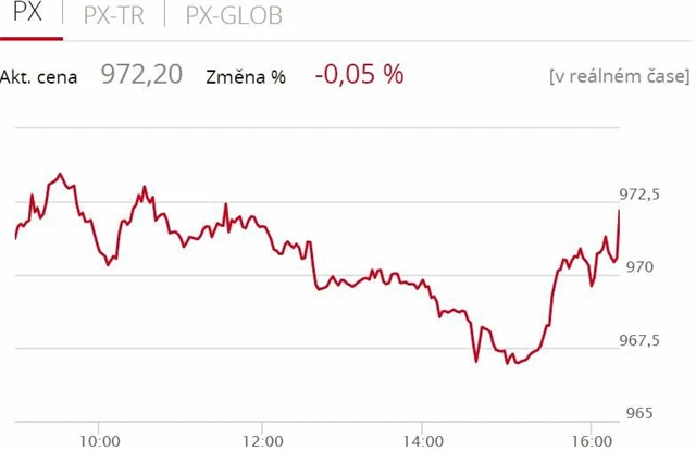 Pražská burza ve čtvrtek mírně klesla, Komerční banka ztratila zhruba 3 %