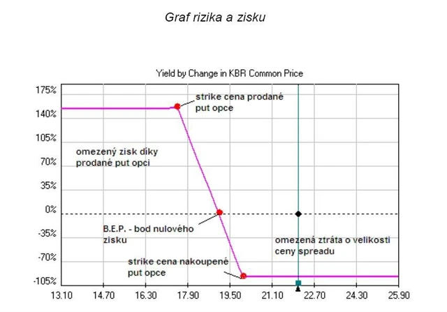 Bod nulového zisku = strike cena nakoupené opce – cena spreadu