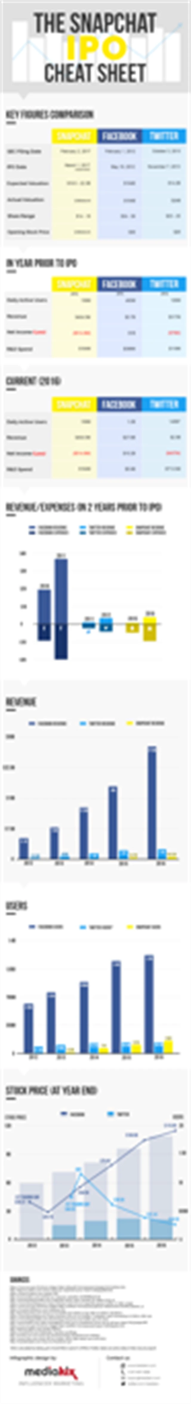 Americká společnost Snap, provozovatel populární sociální sítě Snapchat, by v březnu měla nabídnout své akcie v rámci IPO na newyorské burze NYSE. Emise by měla ohodnotit firmu až na 22 miliard dolarů, což by byl největší vstup na burzu v USA od roku 2014 a největší primární emise technologické firmy v USA od vstupu Facebooku na veřejný trh v roce 2012. Jak si společnost vede v konkurenci na burze již obchodovaných společností Facebook a Twitter?