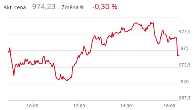 Tahounem dne byla Komerční banka, jejíž akcie stouply o 0,36 % na 953,90 Kč. Většina ostatních titulů ale skončila v červených číslech. MONETA Money Bank odevzdala 0,69 % na 86 korun a pojišťovna VIG 0,62 % na 625 korun. Erste Group Bank se v závěrečné aukci dostala do mírné ztráty a uzavřela na 777,10 Kč. ČEZ odepsal 0,83 % na 454,10 Kč, klesl podruhé za sebou.
