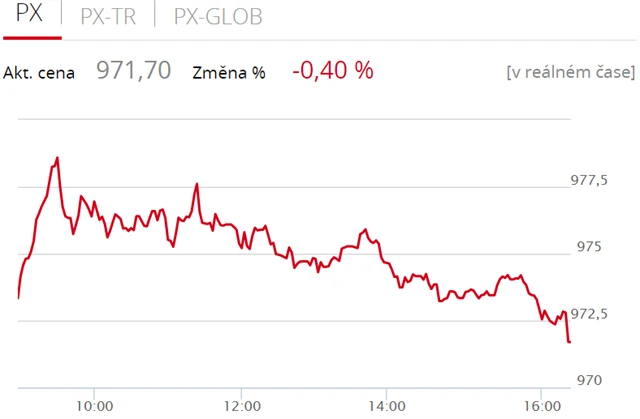 Pražská burza v úterý nenavázala na zisk z pondělní seance, když index PX odepsal 0,4 % na 971,7 bodu. Dolů burzu táhly akcie Komerční banky a O2 Czech Republic, solidní zisk naopak zaznamenaly pojišťovna VIG a sázkařská společnost Fortuna. Objem obchodů byl s 486 miliony korun podprůměrný.