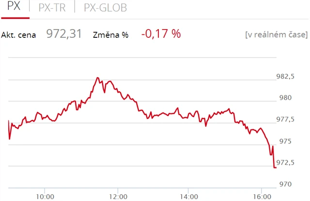 Pražská burza v pátek mírně klesla, za celý týden ztratila podle indexu PX 0,2 %