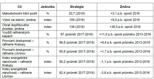 Unipetrol - provozní cíle pro roky 2017 a 2018, zdroj: Unipetrol