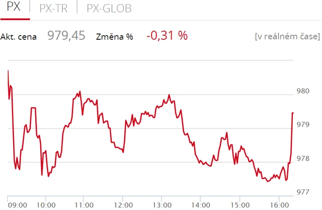 Pražská burza v úvodu nového týdne uzavřela pod nulou, index PX odepsal 0,31 % na 979,45 bodu. Dolů trh táhly akcie Erste Group Bank, energetické skupiny ČEZ a tabákové firmy Philip Morris ČR, dařilo se naopak petrochemickému holdingu Unipetrol a likérce Stock Spirits. Objem obchodů byl s 374 miliony korun podprůměrný.