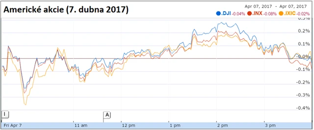 Americké akcie uzavřely páteční obchodování s mírnými ztrátami, i když během dne byly přechodně i v zisku. Investoři reagovali jednak na útok USA na Sýrii, jednak na horší statistiku z amerického trhu práce, byť míra nezaměstnanosti klesla na takřka desetileté minimum 4,5 %.