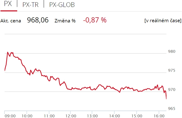 Pražská burza v úterý klesla o necelé procento, nedařilo se finančním titulům