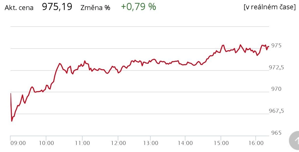 Pražská burza ve čtvrtek poprvé v tomto týdnu vzrostla, index PX stoupl o 0,79 % na 975,19 bodu. Vzhůru šly akcie bank Erste a MONETA a pojišťovny VIG.