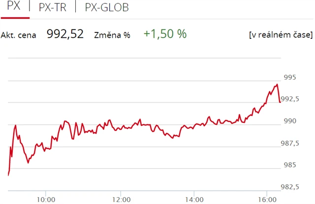 Pražská burza v pondělí v souladu s vývojem v Evropě výrazně vzrostla. Index PX si polepšil o 1,5 % na 992,52 bodu, když jej nahoru táhly akcie Erste Group Bank a pojišťovny VIG. Nedařilo se naopak likérce Stock Spirits a telefonnímu operátorovi O2 Czech Republic. Objem obchodů byl se 712 miliony korun mírně nadprůměrný.