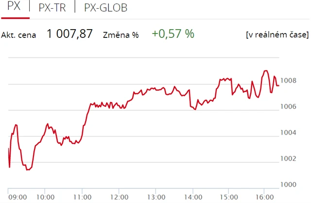 Pražská burza v pátek sedmý den v řadě uzavřela v zelených číslech, index PX zpevnil o 0,57 % na 1 007,87 bodu. Nahoru trh táhly akcie Monety Money Bank a petrochemického holdingu Unipetrol, nedařilo se naopak energetické skupině ČEZ a tabákové firmě Philip Morris ČR. Objem obchodů byl s 563 miliony korun podprůměrný.