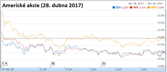 Podle posledních odhadů zisky firem z indexu S&P 500 v prvním čtvrtletí vzrostly o více než 12 %, nejvíce od roku 2011. Optimismus na trzích však sráží geopolitické napětí kolem Severní Koreje a pochyby o tom, zda se vládě amerického prezidenta Donalda Trumpa podaří prosadit snížení daňové zátěže firem i jednotlivců.