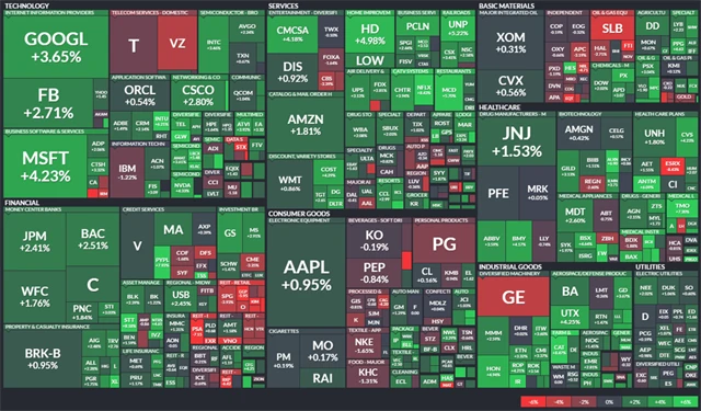 Akcie technologických obrů Alphabet (+3,71 %) a Amazon.com (+0,72 %), kteří po konci čtvrteční seance zveřejnili silné kvartální hospodářské výsledky, se v pátek dostaly na nová historická maxima. Alphabet historické maximum posunul na 935,90 USD a Amazon na 949,59 USD.
