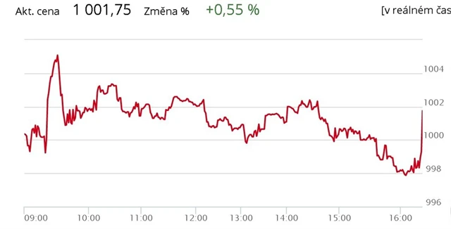 Index pražské burzy PX si během čtvrtečního obchodování připsal 0,55 % a skončil na 1 001,75 bodu. Vzestup vedly akcie Komerční banky a Monety Money Bank.