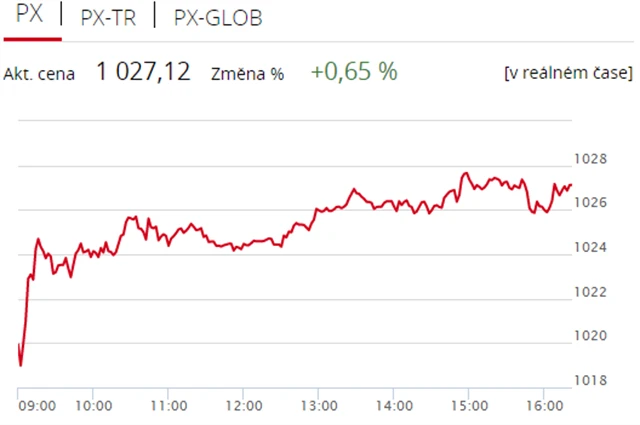 Pražská burza v úterý navázala na zisk z pondělní seance, index PX stoupl o 0,65 % na 1 027,12 bodu. Burza se tak vyšplhala na nejvyšší hodnotu od srpna 2015. Nahoru ji táhly akcie energetické společnosti ČEZ, telefonního operátora O2 Czech Republic a textilky Pegas Nonwovens, o téměř procento naopak klesly cenné papíry Komerční banky. Objem obchodů byl s 685 miliony korun mírně nadprůměrný.