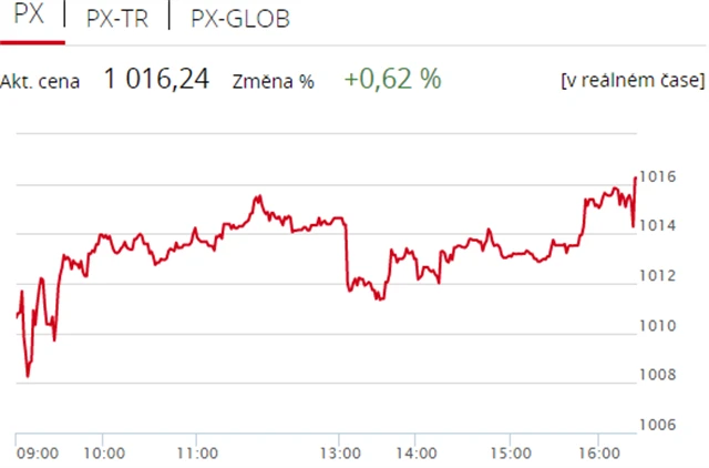Pražská burza v poslední seanci tohoto týdne podle indexu PX stoupla o 0,62 % na 1 016,24 bodu. Nahoru ji táhly Erste Group Bank a textilka Pegas Nonwovens, nedařilo se naopak energetické skupině ČEZ a pojišťovně VIG. Objem obchodů byl s 316 miliony korun výrazně podprůměrný.
