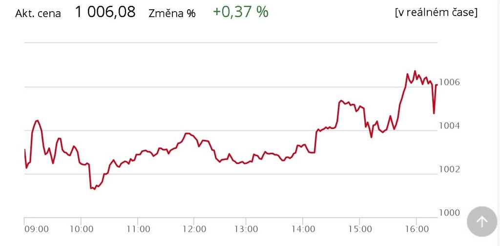 Pražská burza ve čtvrtek poprvé v tomto týdnu vzrostla, přidala 0,37 %