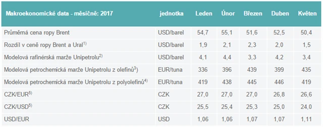 Unipetrol - modelové marže (květen 2017)