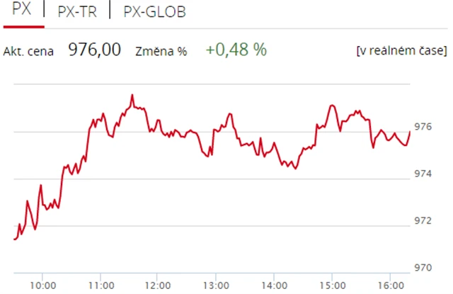 Pražská burza se v úterý odrazila od pondělní ztráty, když index PX stoupl o 0,48 % na 976 bodů. Nahoru ji táhly akcie energetické skupiny ČEZ, textilky Pegas Nonwovens, Erste Group Bank a sázkařské Fortuny, nedařilo se naopak mediální CME a telefonnímu operátorovi O2 Czech Republic. Objem obchodů byl s 384 miliony korun podprůměrný.