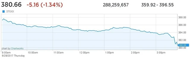 Celoevropský akciový index STOXX Europe 600 zakončil čtvrteční seanci se ztrátou 1,34 %, když prakticky všechny jeho sektory skončily v mínusu.