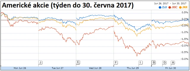 - Výsledky Nike v 4QFY2017: Čistý zisk na akcii 0,60 USD (odhad: 0,50 USD), tržby 8,7 miliardy USD (odhad: 8,6 miliardy USD). Akcie ve čtvrtečním after-marketu +7 %.