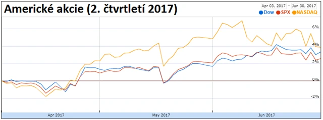 Ve druhém čtvrtletí Dow zpevnil o 3,32 %, S&P 500 posílil o 2,57 % a Nasdaq Composite zpevnil o 3,87 %.