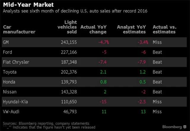 Prodeje aut ve Spojených státech v červnu dosáhly v celoročním přepočtu 16,51 milionu jednotek. Vyplývá to z údajů společnosti Autodata. Čekal se výsledek 16,6 milionu jednotek. V květnu činily anualizované prodeje 16,66 milionu.