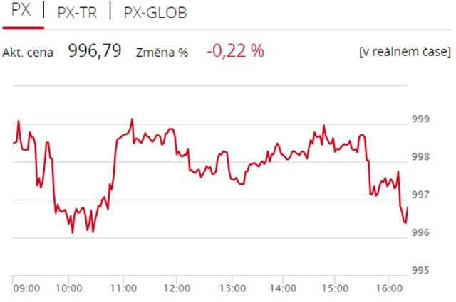Pražská burza v úterý nenavázala na zisk z předcházející seance, když index PX klesl o 0,22 % na 996,79 bodu. Dolů burzu táhly Komerční banka a mediální CME, v plusu obchodování zakončili telefonní operátor O2 Czech Republic a pojišťovna VIG. Objem obchodů byl s 323 miliony korun podprůměrný.