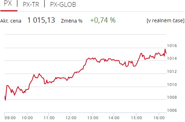 Pražská burza v úterý navázala na zisk z pondělní seance, když index PX zpevnil o 0,74 % na 1 015,13 bodu. Nahoru burzu táhly Erste Group Bank, pojišťovna VIG a mediální CME, jež v úterý zveřejnila výsledky hospodaření za uplynulé čtvrtletí. Nedařilo se naopak petrochemickému holdingu Unipetrol a telefonnímu operátorovi O2 Czech Republic. Objem obchodů byl s 462 miliony korun podprůměrný.