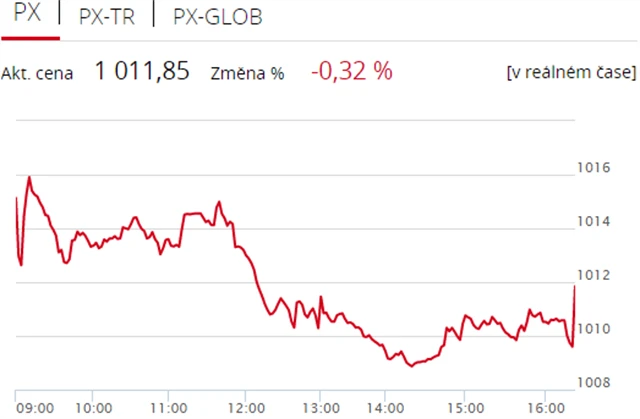 Pražská burza ve středu nenavázala na zisky z předcházejících dvou seancí, když index PX klesl o 0,32 % na 1 011,85 bodu. Dolů burzu táhly akcie Komerční banky, dařilo se naopak Monetě Money Bank, textilce Pegas Nonwovens a tabákové firmě Philip Morris ČR. Objem obchodů byl s 418 miliony korun podprůměrný.