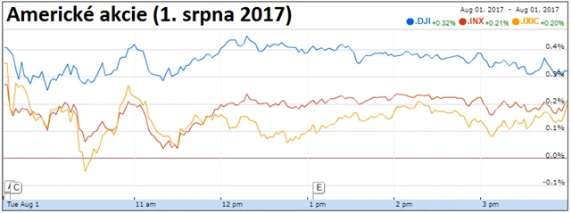 - Index nákupních manažerů ve zpracovatelském sektoru USA v červenci podle finálních dat společnosti Markit stoupl z 52 bodů v červnu na 53,3 bodu. Očekával se růst ukazatele na 53,2 bodu. Index sestavovaný institutem ISM naopak klesl na 56,3 bodu z 57,8 bodu v předchozím měsíci (odhad: 56,5 bodu).