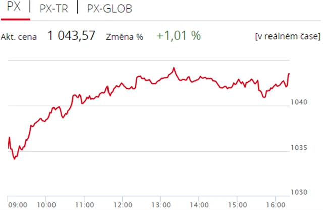 Pražská burza v úterý čtvrtý den v řadě zpevnila. Index PX vzrostl o 1,01 % na 1 043,57 bodu. Nahoru burzu táhly akcie energetického gigantu ČEZ (+2,86 %), jenž ráno oznámil lepší než očekávané výsledky hospodaření a zlepšil celoroční výhled. Nedařilo se naopak mediální společnosti CME. Objem obchodů byl s 629 miliony korun mírně podprůměrný.