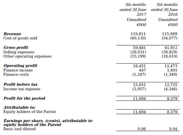 Provozní zisk EBITDA společnosti vyskočil o 23,4 % na 22 milionů eur a zisk na akcii dosáhl 0,06 eura po 0,04 eura před rokem. Objem prodejů se v pololetí zvýšil o 7,3 % na ekvivalent 5,7 milionu 9litrových balení z 5,4 milionu 9litrových balení. Firmě se opět začíná dobře vést i v Polsku, kde se jí daří zvyšovat tržní podíl i zisk. Prodeje ochucené vodky se na tamním trhu zvýšily o téměř osm procent. Likérce se také podařilo snížit prodejní náklady, meziročně klesly z 61,91 milionu eur na 59,68 milionu eur.