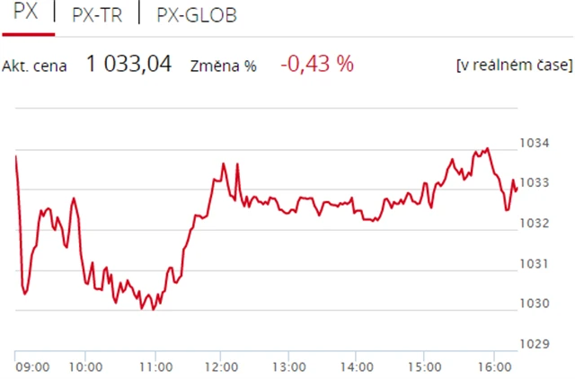 Pražská burza v pátek přerušila sérii čtyř ziskových seancí, index PX klesl o 0,43 % na 1 033,04 bodu. Dolů burzu táhly cenné papíry Erste Group Bank a Monety Money Bank, dařilo se naopak likérce Stock Spirits a sázkařské Fortuně. Objem obchodů byl s 342 miliony korun výrazně podprůměrný.