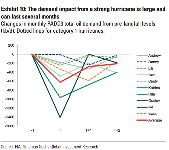 "Bouře odeznívá pomalu, a v dalších dnech tak lze očekávat další uzavírání rafinerií. Bouře rovněž může způsobit další trvalá poškození," napsal v pondělním reportu šéf energetického divize Goldman Sachs Damien Courvalin.