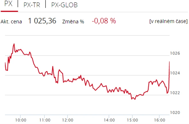 Pražská burza v úterý nenavázala na zisk z pondělní seance, když index PX odepsal 0,08 % na 1 025,36 bodu. Dolů burzu táhly cenné papíry energetické skupiny ČEZ a Erste Group Bank, dařilo se naopak petrochemickému holdingu Unipetrol a sázkařské společnosti Fortuna. Objem obchodů byl s 222 miliony korun výrazně podprůměrný.