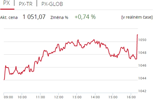Pražská burza se v pátek odrazila od čtvrteční ztráty, když index PX zpevnil o 0,74 % na 1 051,07 bodu. Nahoru ji táhly finanční tituly a energetická skupina ČEZ. Výrazně naopak klesly akcie mediální společnosti CME. Objem obchodů byl s 1,25 miliardy korun výrazně nadprůměrný.