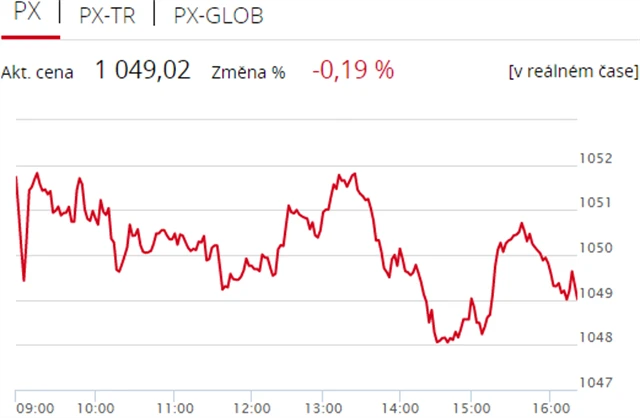 Pražská burza v pondělí nenavázala na zisk z páteční seance, když index PX ztratil 0,19 % na 1 049,02 bodu. Dolů ji stáhly akcie Komerční banky a pojišťovny VIG. Objem obchodů byl s 425 miliony korun podprůměrný.