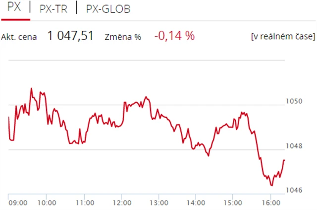 Pražská burza v úterý prohloubila pondělní ztrátu, když index PX odepsal 0,14 % na 1 047,51 bodu. Dolů ji stáhly polostátní společnost ČEZ, Erste Group Bank a pojišťovna VIG, dařilo se naopak Komerční bance. Objem obchodů byl s 691 miliony korun mírně nadprůměrný.