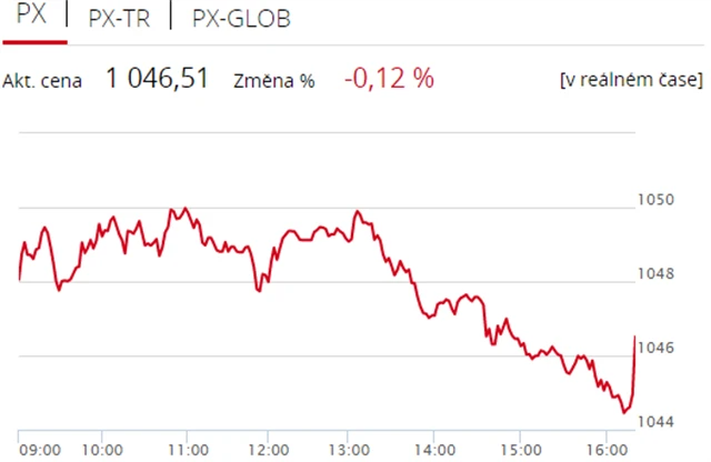 Pražská burza v pátek nenavázala na zisk ze čtvrteční seance, když index PX odepsal 0,12 % na 1 046,51 bodu. Dolů burzu táhly energetická skupina ČEZ, Erste Group Bank a mediální společnost CME, dařilo se naopak petrochemickému holdingu Unipetrol a operátorovi O2 Czech Republic. Objem obchodů byl s 446 miliony korun podprůměrný.