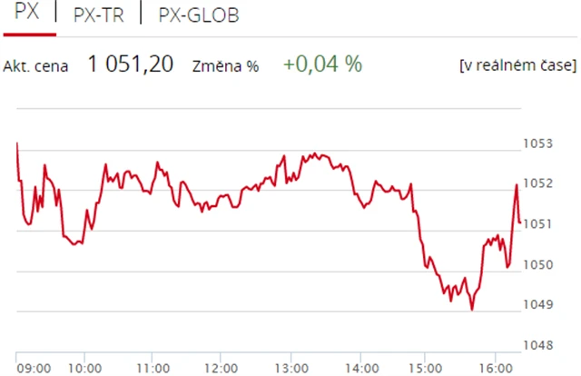 Pražská burza v úterý navázala na zisk z pondělní seance, když index PX zpevnil o 0,04 % na 1 051,2 bodu. Nahoru ji táhly akcie polostátní společnosti ČEZ, výrazně naopak klesly textilka Pegas Nonwovens a nápojářská skupina Kofola ČeskoSlovensko. Objem obchodů byl s necelými 432 miliony korun podprůměrný.