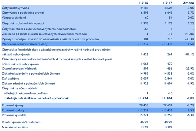 Česká spořitelna - hospodářské výsledky za 9M2017, zdroj: ČS
